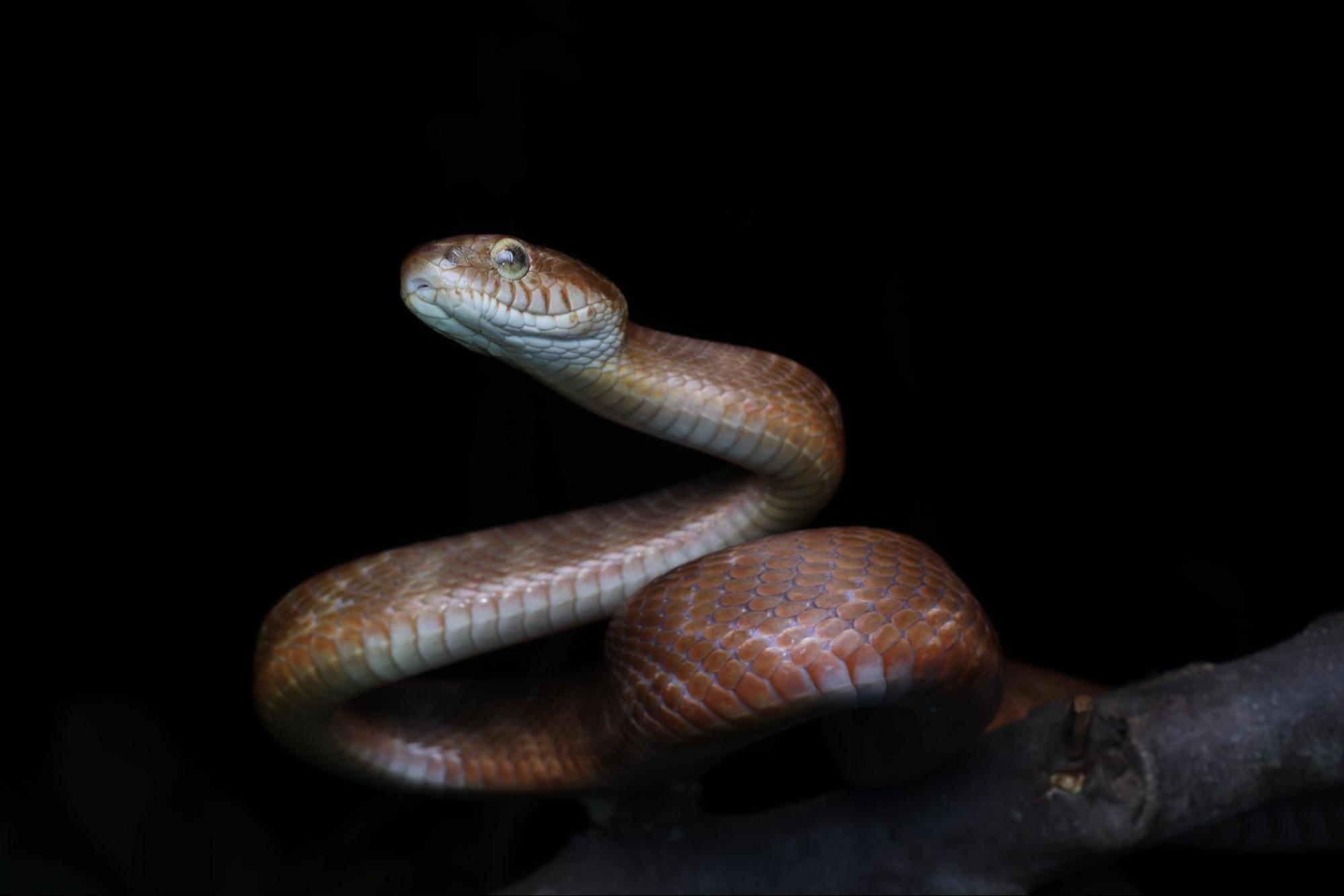 Although it is a mildly venomous species, Forsten's Cat Snake is generally shy and prefers to keep its distance from humans. If approached too closely, it may warn by opening its mouth and producing a loud hiss; similar to the hiss of a Russell's Viper.