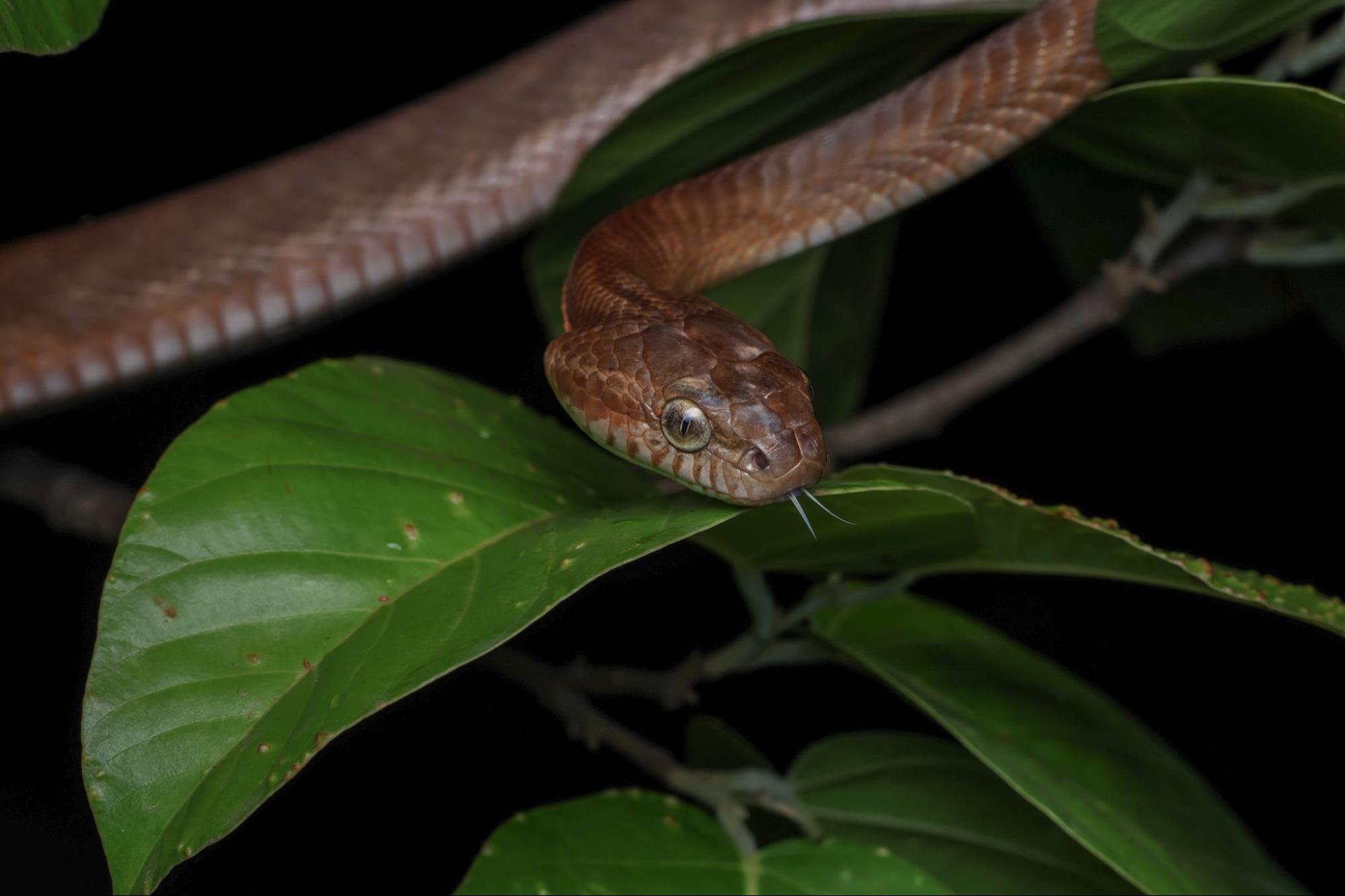 This is one of the most widely distributed cat snake species in the Indian subcontinent. It thrives in a variety of habitats, including rainforests, moist deciduous forests, dry deciduous forests, high elevations, and plains. Its adaptability makes it relatively common near human habitations too. In Kanha landscape, Forsten's cat snake is more commonly seen than another species of cat snake which is Common cat snake.