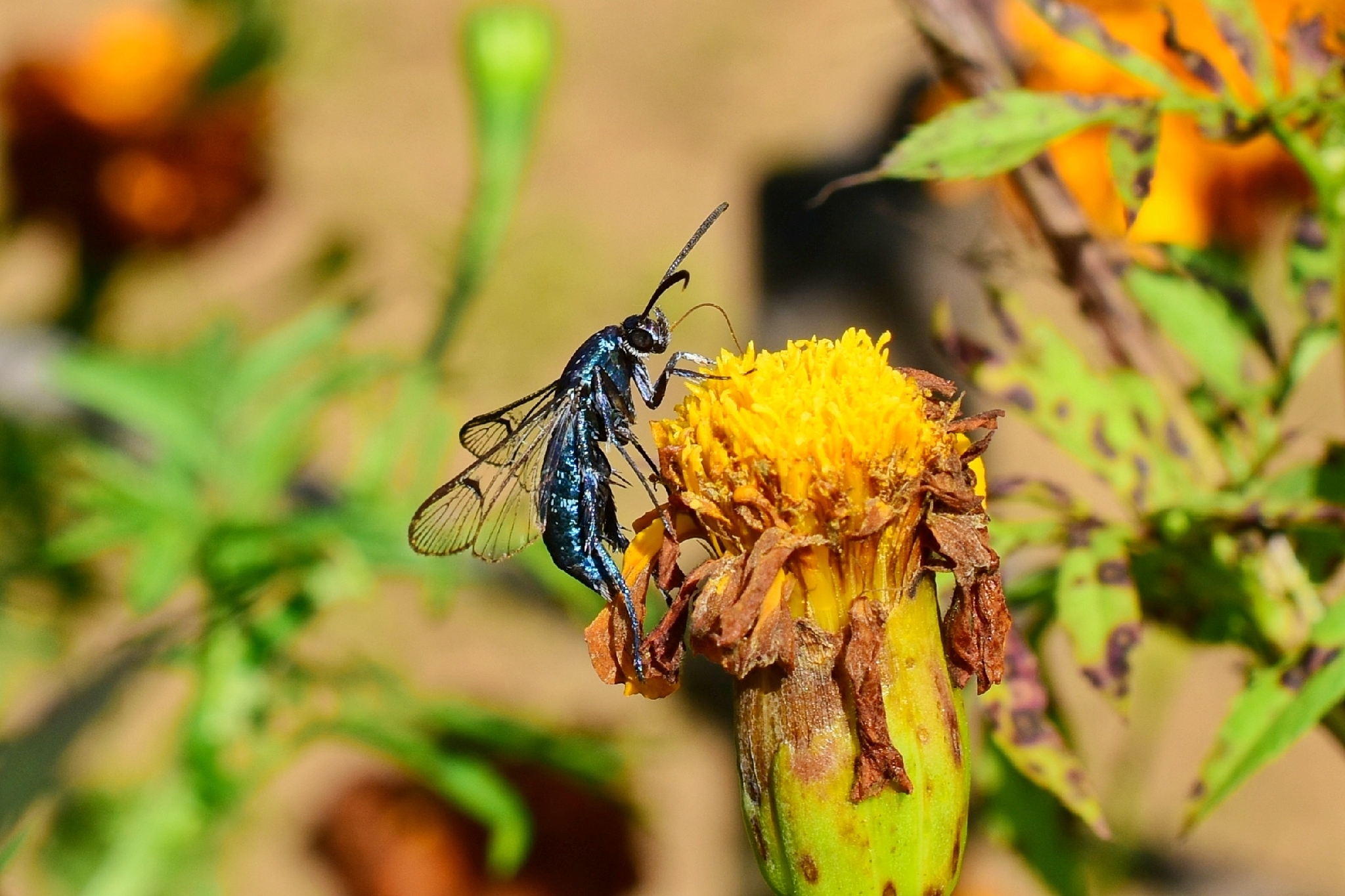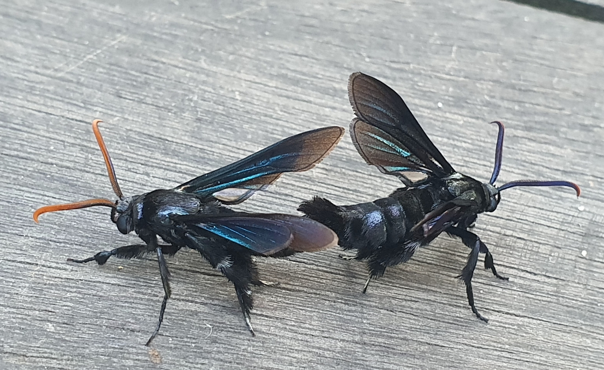 One evening, while observing insects near the ground, I noticed what appeared to be a pair of wasps mating. But something about one of them felt different. When I looked closer, I noticed a proboscis-like that of a butterfly or moth. Intrigued, I took a few photographs and later uploaded them on iNaturalist, a citizen science platform where experts help identify species.